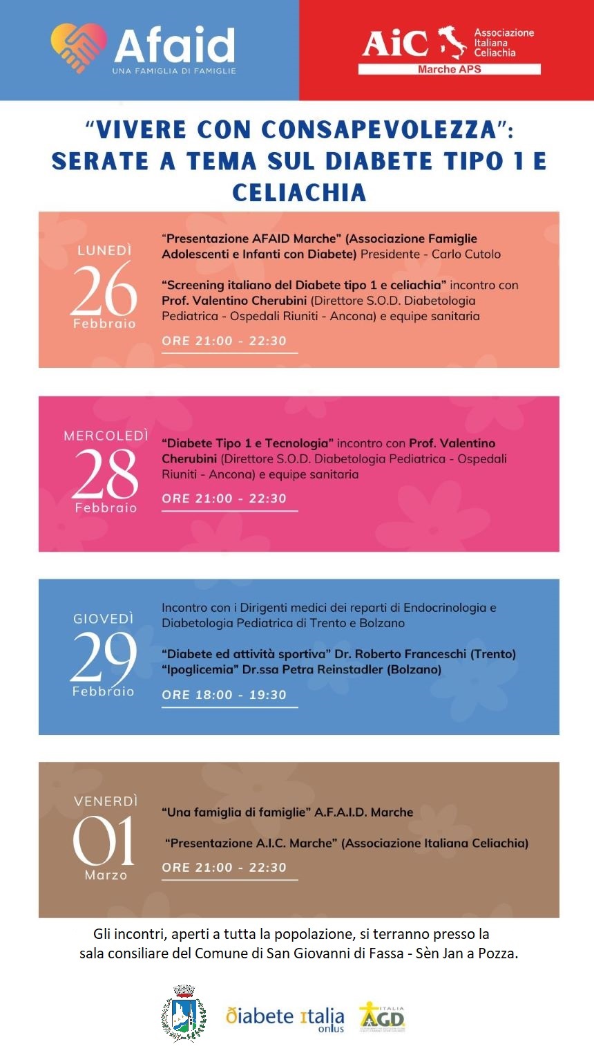 VIVERE CON CONSAPEVOLEZZA - serate a tema sul diabete tipo 1 e celiachia organizzate dall'associazione A.F.A.I.D. Marche e A.I.C. Marche con la partecipazione di medici esperti.